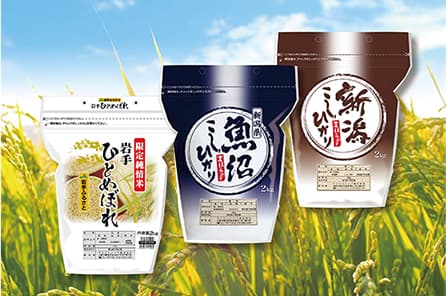 包装工程で窒素を充填することで、お米の劣化を防ぎ、精米したての美味しさを長期間保存することが出来ます。多様化する消費者ニーズに対応した商品開発にも取り組んでいます。