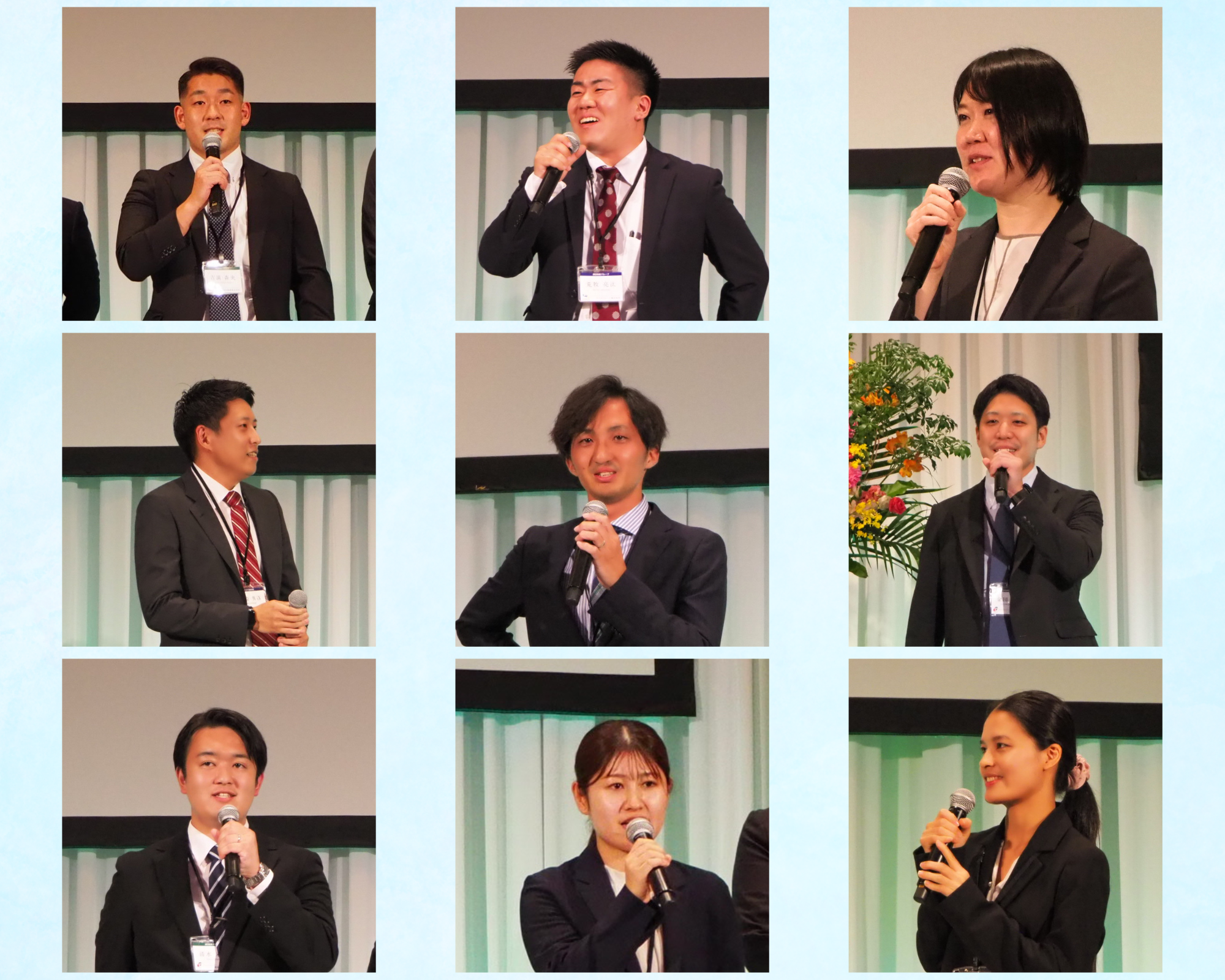 産地様、お取引先様ご参加のイベントでは恒例となりつつある「若手社員紹介」をいたしました。9名の若手社員が、次の100年に向けて一言ずつ話しました。