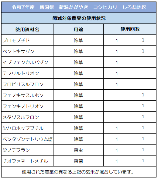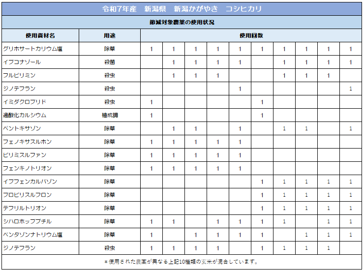 ホーム > 特別栽培米 節減対象農薬の使用状況(新潟県コシヒカリ)