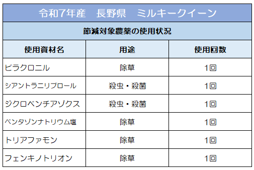 特別栽培米 節減対象農薬の使用状況(長野県ミルキークイーン)