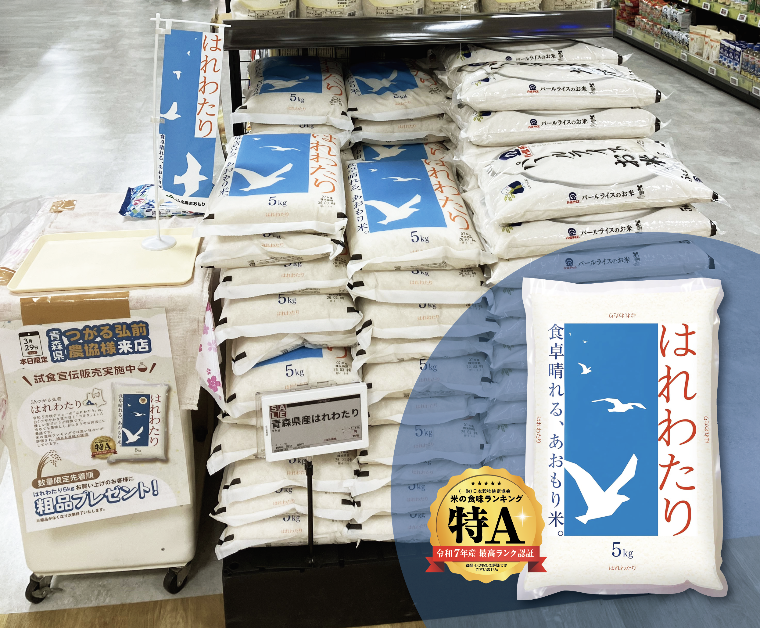 「青森県産はれわたり」は(一財)日本穀物検定協会が実施する令和7年産米の食味ランキングにおいて最高評価の「特A」を取得しました。
